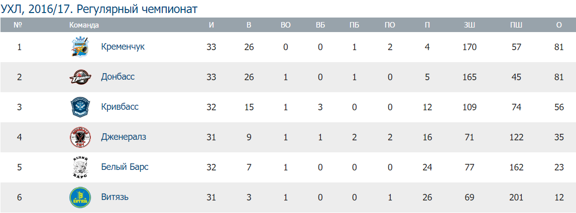 Матчи в сезоне 2016-2017 годов - 3:1, 2:3, 2:6, 1:3, 0:10, 0:12
