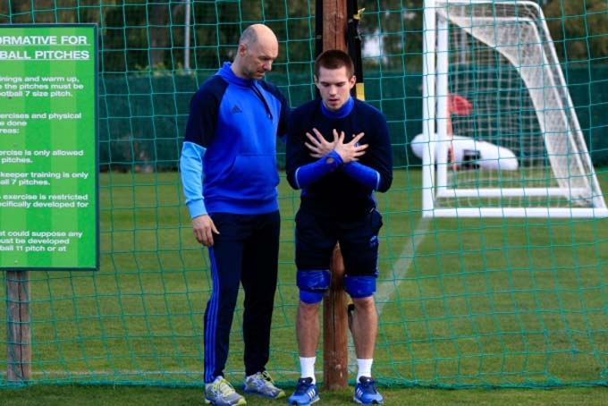 Причем тренерский штаб максимально ограничил беговую работу для футболистов – почти все упражнения выполнялись с мячами. Утренняя тренировка была поделена на две части. В первой из них динамовцев ждали четыре станции – футболисты приседали со штангами, гирями и гантелями, преодолевали стойки и барьеры, после чего должны были пробить головой или ногами либо точно в руки тренеру вратарей Михаилу Михайлову, либо попасть в маленькие и большие ворота с определенного расстояния.