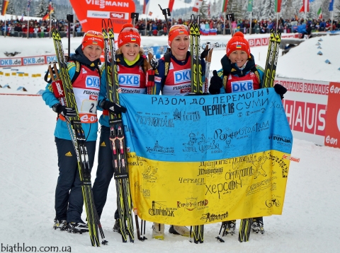 Первое и пока что единственное «золото» Хохфильцена для Украины принесла великолепная четверка: Юлия Джима, Вита и Валя Семеренко, Елена Пидгрушная, использовав всего три дополнительных патрона на четверых, выиграли эстафетную гонку (0+3)! Есть цель на Сочи!
