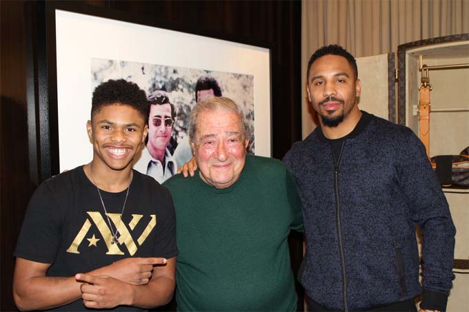 Промоутерская компания Боба Арума Top Rank заключила контракт с главной надеждой американского бокса - 19-летним Шакуром Стивенсоном, который на Олимпийских Играх в Рио-де-Жанейро завоевал серебряную медаль в весовой категории до 56 кг. На фото - Шакур Стивенсон, Боб Арум и менеджер Стивенсона Андре Уорд.