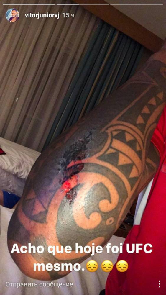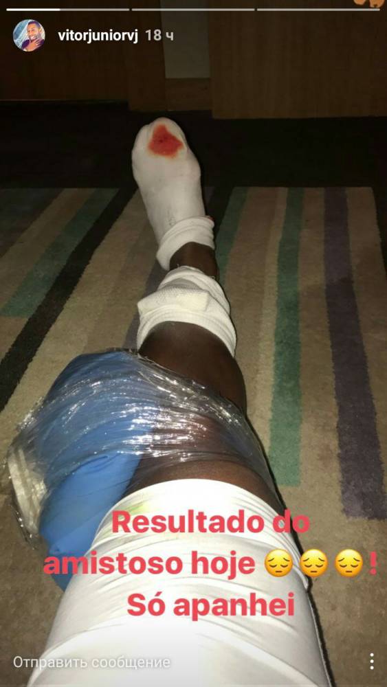 Свое мнение о грубой игре «Стали» выразил и бразильский хавбек Витор Жуниор. «Результат товарищеской игры. Я травмирован», - подписал следующее фото футболист: