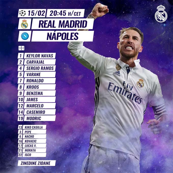 «Реал»: Навас – Карвахаль, Рамос, Варан, Марсело, Кроос, Каземиро, Модрич, Хамес, Бензема, Роналду.