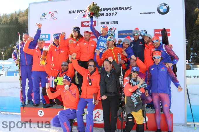 Відверто похнюпленим був Мартен Фуркад, котрий однозначно розраховував здобути на цьому чемпіонаті більше одного «золота». З пересердя француз великими струями розливав «бронзове» шампанське. Особливо багато виливши на фотографів, які знімали процес під сценою.