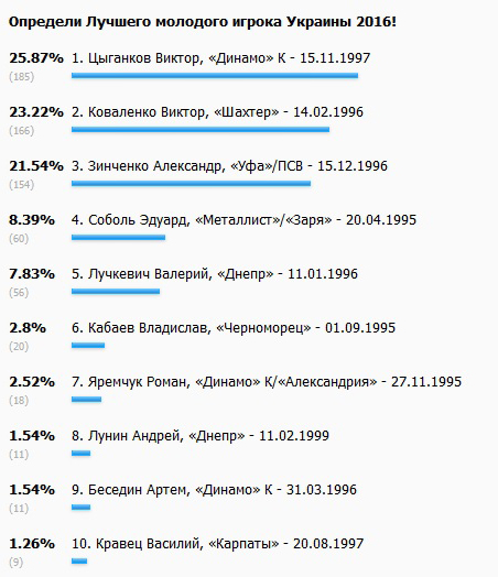 За звание Лучшего молодого футболиста Украины 2016 вели борьбу три футболиста - Виктор Коваленко, Виктор Цыганков и Александр Зинченко, но за счет солидного преимущества в голосовании редакции Sport.ua и ведущих СМИ Украины, этот титул достался полузащитнику донецкого «Шахтера» и сборной Украины, Виктору Коваленко!