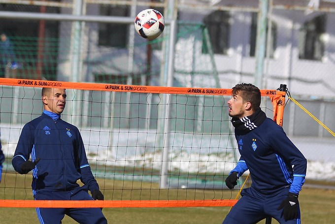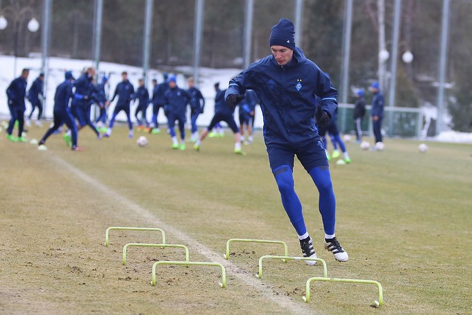 Основная команда киевского «Динамо» готовится к первому официальному матчу в новом году против луганской «Зари». В эти дни команда работает на зеленом поле, с подогревом, на котором расчищен снег, совмещая эти занятия с упражнениями в тренажерном зале и крытом манеже клубной базы. Благодаря профессиональному уходу, газон находится в отличном состоянии для этого времени года.