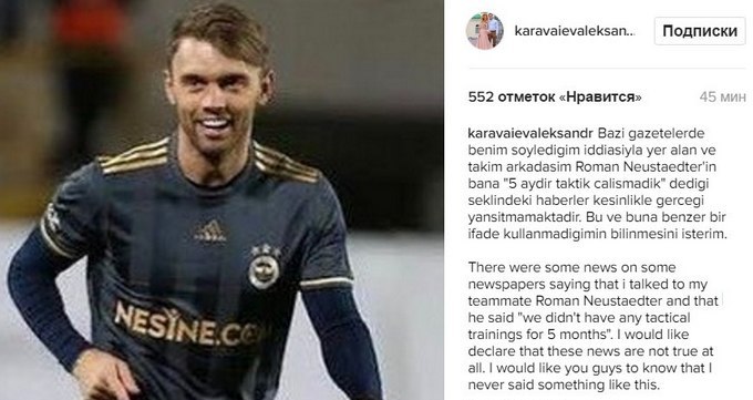 Во вторник утром на официальной странице футболиста в Instagram появилось опровержение его собственных слов. Согласно тексту, Караваев никогда не произносил ничего подобного.