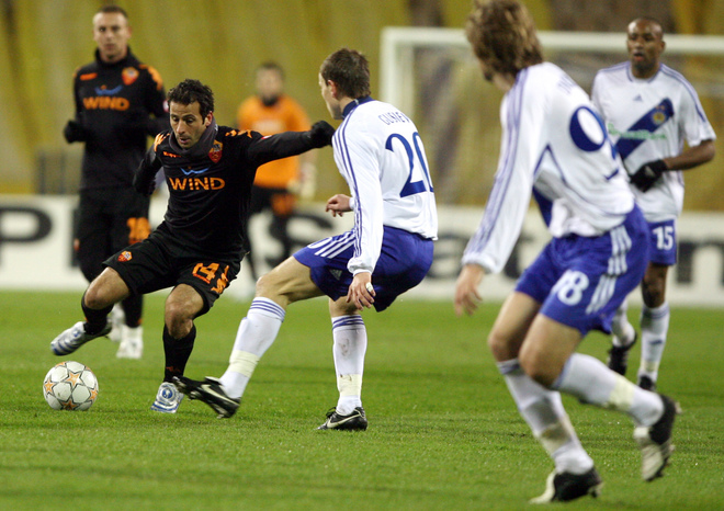 Римляне все это время атаковали редко, но очень даже метко. Продолжал делать нацеленные и какие-то неберущиеся для нашей защиты навесы с левого фланга Тонетто. После очередной подачи невысокий Жюли пробил головой (пытавшийся взгромоздиться на нем сверху Гиоане удару не помешал), но немного не попал в цель. Затем Вучинич в борьбе с Гавранчичем оказался на очень хорошей позиции, но попал во вратаря. Ну а следом был гол. Кого-то из наших футболистов обокрали в центре поля (этим римляне занимались постоянно) и мяч мгновенно был заброшен на Вучинича и Жюли, которые не успели оттянуться из атаки назад. Вучинич был в офсайде, а Жюли – нет. Людовик и вышел один на один, обыграл Рыбку и забил.