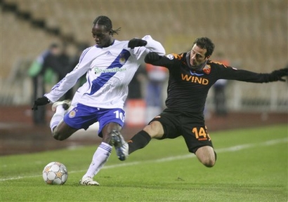 Как уже часто бывало у «Динамо» в этой Лиге, пропустили мы быстро. На 9-й, 10-й и 14-й минутах киевляне уже пропускали этой осенью, а на сей раз это произошло на 4-й минуте встречи. Кристиан Пануччи сделал навес с правого фланга, а Вучинич не дотянулся до мяча, но, несмотря на это он проследовал туда, куда ему надо было – в ворота. Динамовская оборона и вратарь в эти мгновения показались «недоконцентрированными». Как обычно в ЛЧ.