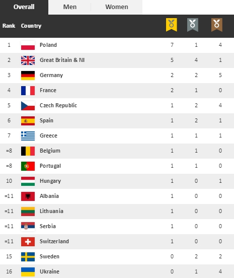 Медальный зачет выиграла сборная Польши, Украина - на 16-м месте.
