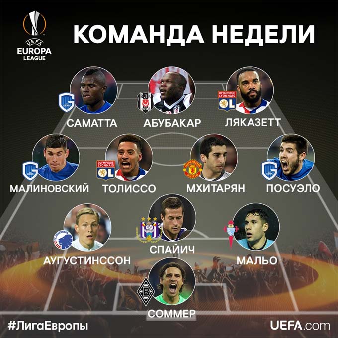 Генрих Мхитарян и Руслан Малиновский попали в команду недели Лиги Европы УЕФА благодаря яркой игре в первых матчах 1/8 финала.
