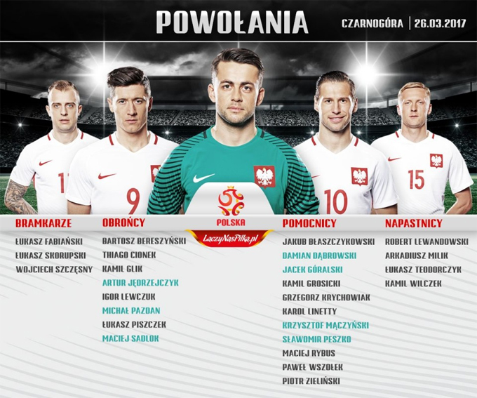 Главный тренер сборной Польши Адам Навалка вызвал следующих футболистов: