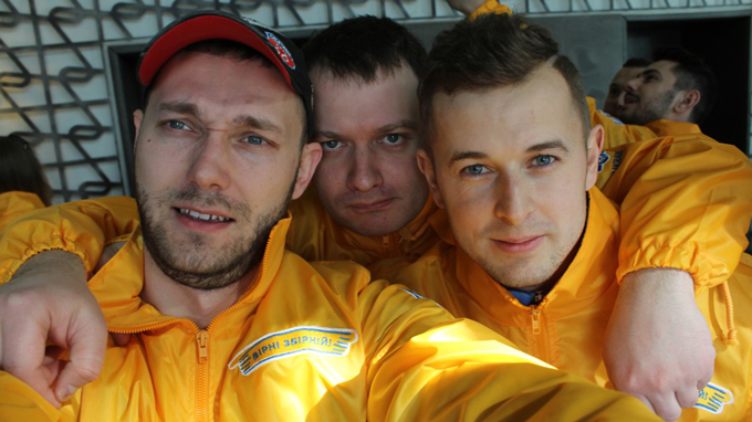 - О, ні, вони прибули першими, раніше на годину за нас, тож зустрічали вже вони. Утім, як я знаю, автобуси йшли з Києва 28 годин, тож лише вчора за добу перед грою, фанати відіспалися і вже прибули на тренування команди. Це фан-рух «Вірні збірній» створений за ініціативи преміум-спонсора нашоі збірної та за підтримки ФФУ.