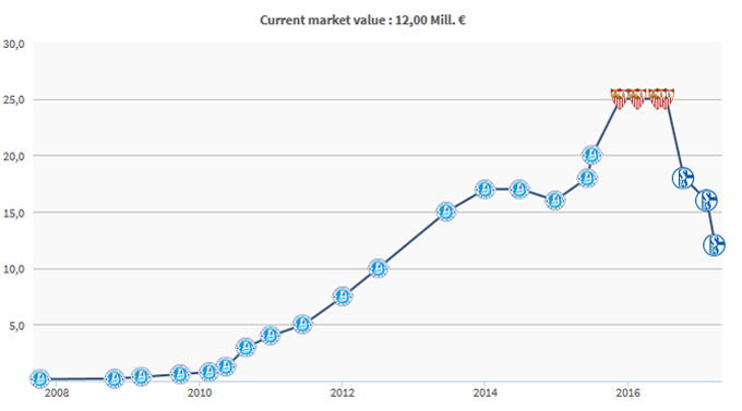 Авторитетный футбольный бизнес-ресурс Transfernarkt опубликовал обновленные данные о трансферной стоимости футболистов. Цена на украинского хавбека «Шальке» Евгения Коноплянку за полтора месяца упала на 4 миллиона евро и теперь составляет 12 млн.