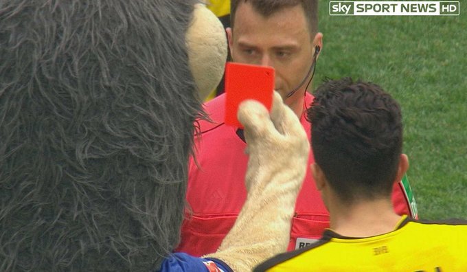 Маскот Шальке показал красную карточку арбитру матча с Боруссией Д