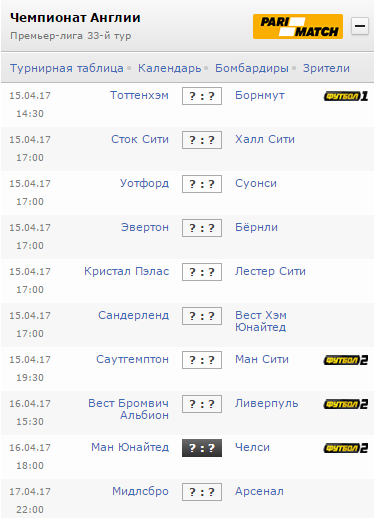 Все матчи 33-го тура: