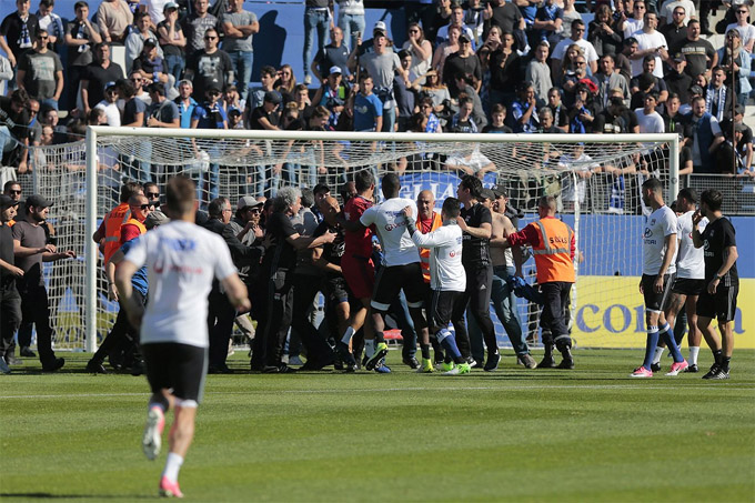Фанаты Бастии выбежали на поле и атаковали футболистов Лиона