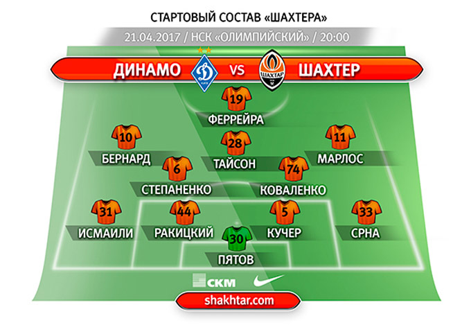 21 апреля в центральном матче 26-го тура Премьер-лиги «Динамо» встретится с «Шахтером». Вашему вниманию – составы команд.
