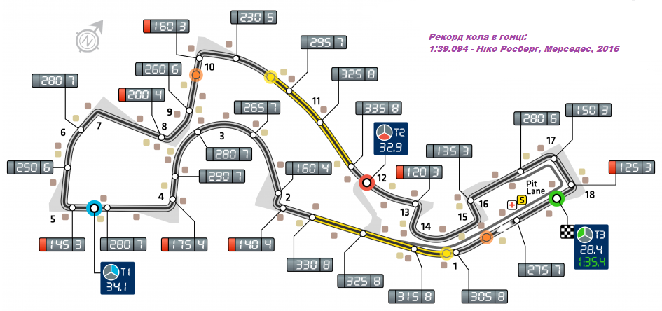 кваліфікація: 1’35.417 (2016 – Ніко Росберг)