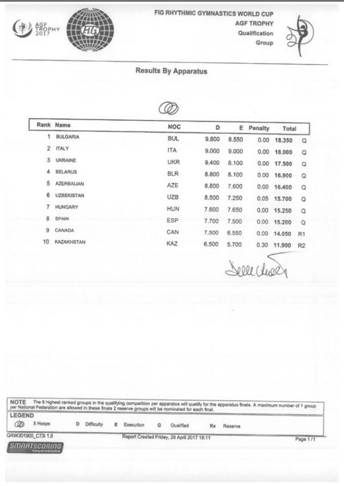 Украинские групповички успешно справились со своей программой с 5 обручами, получив 17.500, что является на данный момент третьим лучшим результатом.