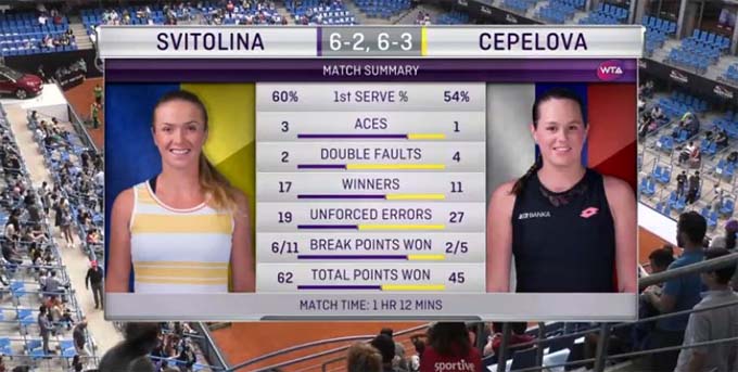 Элина Свитолина (Украина) – Яна Чепелова (Словакия) – 6:2, 6:3.