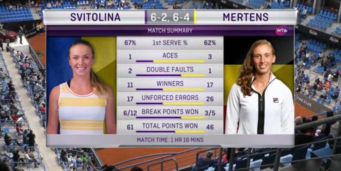 В финальном матче харьковчанка в двух сетах переиграла бельгийку Элис Мертенс: 6-2, 6-4.