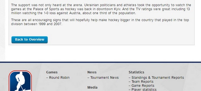 По словам представителей оргкомитета на пресс-конференции с участием президента IIHF Рене Фазеля тольку игру украинцев с австрийцами посмотрели 13 миллионов человек. Об этом даже написали на официальном сайте Международной федерации хоккея.