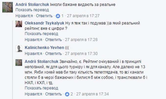 Информацию о том, что цифры телепросмотров были серьезно завышены на своей странице в Facebook подтвердил и комментатор телеканала UA:Перший Андрей Столярчук.