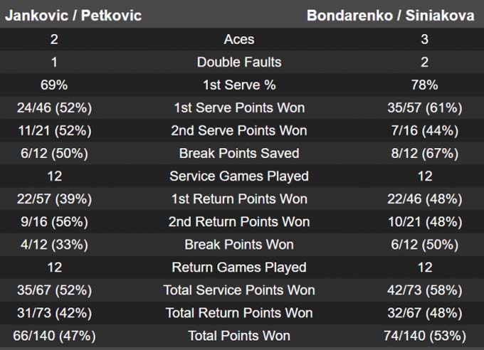 Поединок продолжался почти 1 час и 40 минут, и завершился победой украино-чешской пары со счетом: 7-5, 7-5.