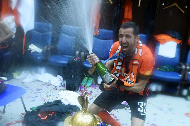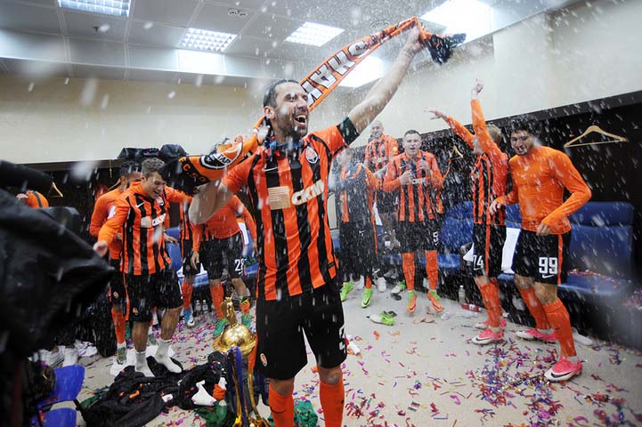 Донецкий «Шахтер» победил киевское «Динамо» в финале Кубка Украины (1:0). После празднования на стадионе, «горняки» спустились в раздевалку и продолжили бурно отмечать завоевание второго трофея в сезоне.