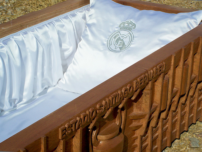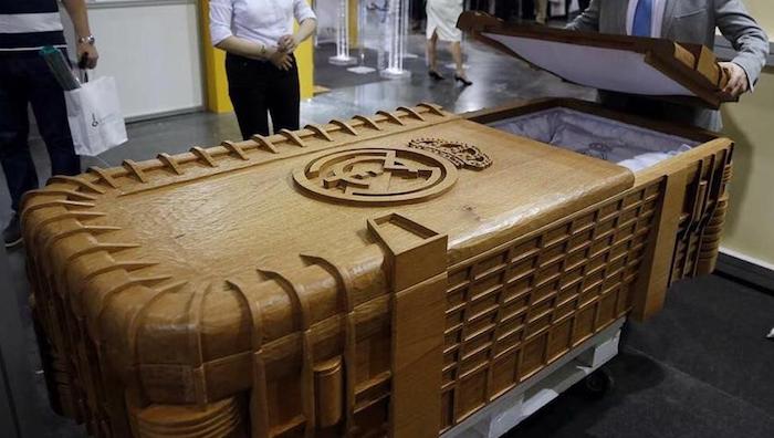 В Испании одна фирма предлагает заказчикам гробы с символикой их любимой футбольной команды. Стоимость таких изделий не разглашается.