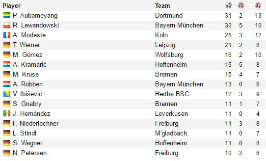 Нападающие: Роберт Левандовски («Бавария»), Пьер-Эмерик Обамеянг («Боруссия» Д).