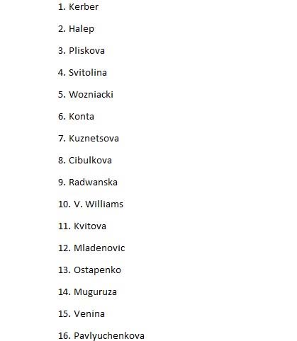 В списке, опубликованном журналистом Жозе Моргадо, Свитолина разместилась на четвертом месте. Впереди украинки только Ангелик Кербер, Симона Халеп и Каролина Плишкова.