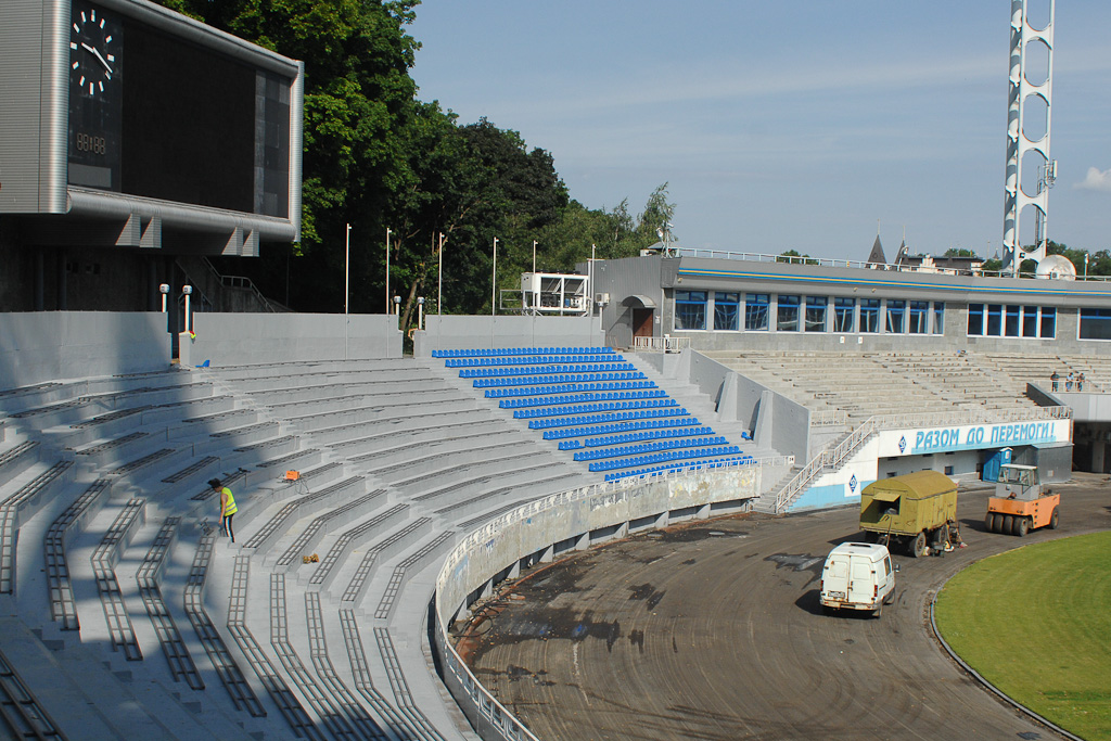 В частности, уже проведены все подготовительные мероприятия на трибунах и начали устанавливать новые сиденья, также синего цвета, как было раньше.