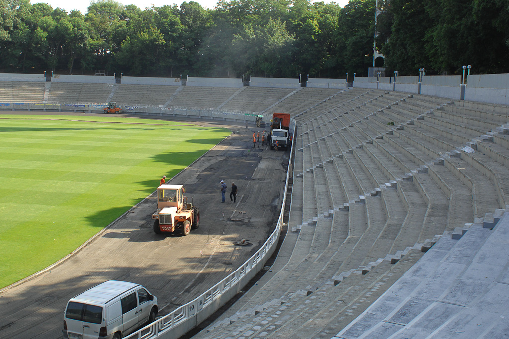 Уже вскоре рабочие начнут укладывать новую беговую дорожку итальянского производства, которая будет иметь бело-синюю окраску.