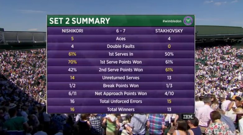 Первый сет начался с разведки. В пятом гейме Нишикори удалось сделать брейк, но Стаховский довольно быстро его отыграл. К сожалению, при счете 4:4 украинец отдал свою подачу и не смог навязать борьбу сопернику в следующем гейме.