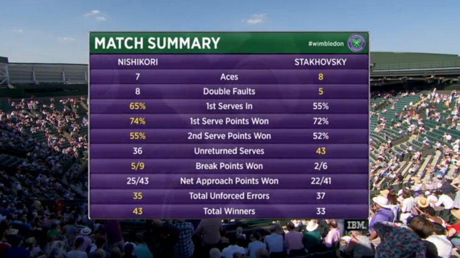 Украинец Сергей Стаховский завершил борьбу на «Уимблдоне». В матче второго круга украинский теннисист в четырех партиях проиграл девятому сеянному Кеи Нишикори из Японии. Матч продолжался почти 3,5 часа.