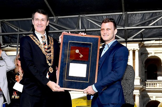 В Брисбене состоялся парад в честь победы австралийца Джеффа Хорна над знаменитым филиппинцем Мэнни Пакьяо в поединке за титул чемпиона мира по версии WBO в полусреднем весе.