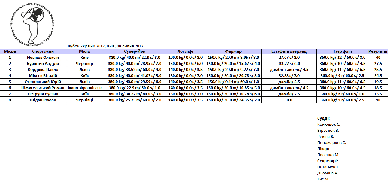 Упродовж стронгменівського сезону професіонали наполегливо «збирають» залікові бали до національного рейтингу, який визначить учасників найпрестижнішого змагання року серед українських богатирів – турніру «Найсильніша людина України». На четвертому етапі Кубка України рівних не було чинному володарю цього титулу і лідеру поточного рейтингу Олексію Новикову. Киянин впевнено переміг у всіх п’яти вправах змагання, в одній із них повторивши рекорд України. У «Лог-ліфті на максимум» до останнього з фаворитом «рубався» актуальний рекордсмен у цій дисципліні Віталій Міхеєв. Врешті-решт, Віталій зупинився на вазі 180 кг, а Олексій зумів зафіксувати 190 кг, ставши з Міхеєвим співволодарем рекорду.