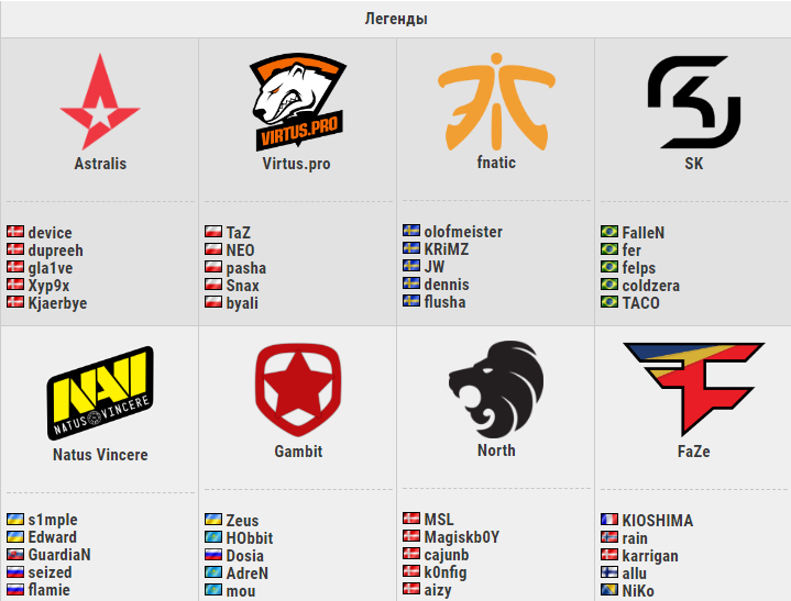 Составы команд-легенд:
