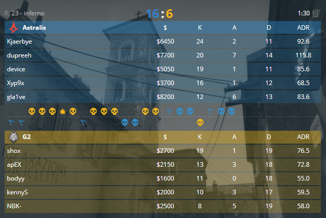 Игра за выход в плей-офф состоялась для парней из Дании. Astralis в этот раз сыграли против G2. Французы ничего не смогли показать на карте de_inferno. Легкая победа для датчан 16:6. И они отправляются на Tauron Arena, со счетом серии 3-1.