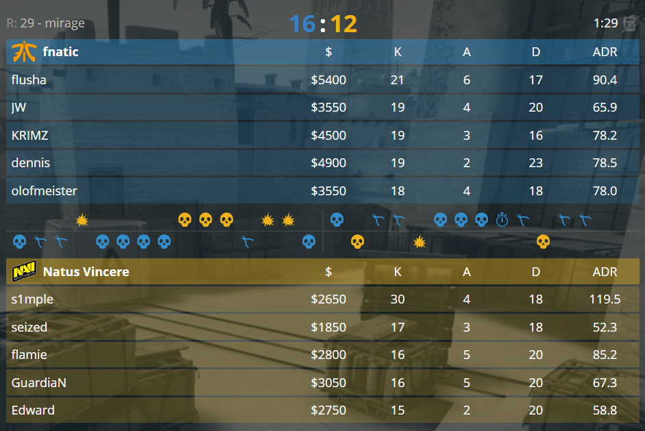 Ожидания только качественной игры от Natus Vincere и их оппонентов, которыми стали ребята из Fnatic. Переиграв противников в защите с минимальным счетом 8-7, команда ничего не смогла противопоставить коллективу из Швеции. Проигрыш со счетом 16:11 и СНГ-коллектив покидает мажор в Кракове.
