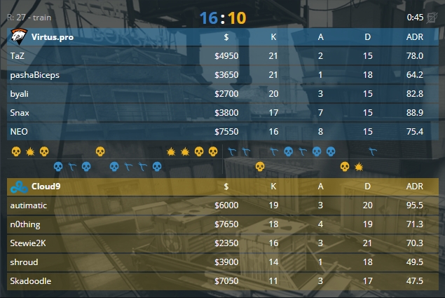Очередная карта de_train, очередная путёвка на выход в официальную часть мажора разыгрывалась между американцами и поляками. Настолько сильной игры от VP не ожидал никто. Победа Virtus Pro, - 16:10.