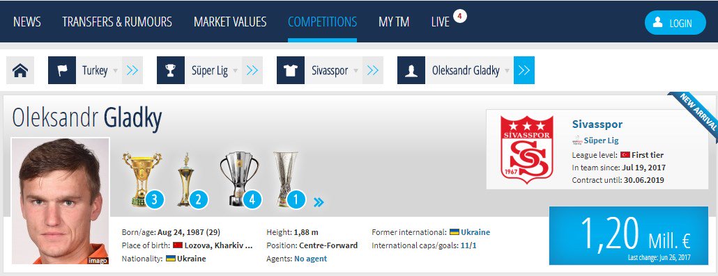 Ранее эта информация была подтвердженана на бизнес-портале Transfermarkt в профайле украинского нападающего. На данный момент Гладкий числится свободным агентом.