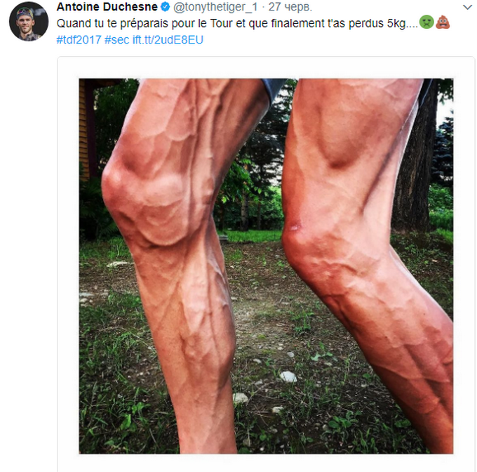 Полянски был не единственным гонщиком, который выставил на обзор общественности свои ноги. Даже раньше, чем поляк, это сделал канадец Антуан Дюшесн, который похвастался своей формой, но в то же время и пожаловался, что с такими «ногами терминатора» его даже не взяли на Tour de France – команда Direct Energie остановила свой выбор на других кандидатах.