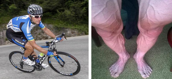 Ноги 11-кратного победителя этапов Tour de France Андре Грайпеля впечатляют рельефностью и мощью.
