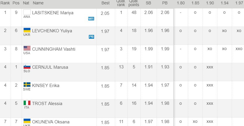 Триумфаторка молодежного чемпионата Европы вновь побила свой личный рекорд, со второй попытки взяв высоту 1,97 м. До этого персонал бестом 19-летней легкоатлетки была высота 1,96 м.