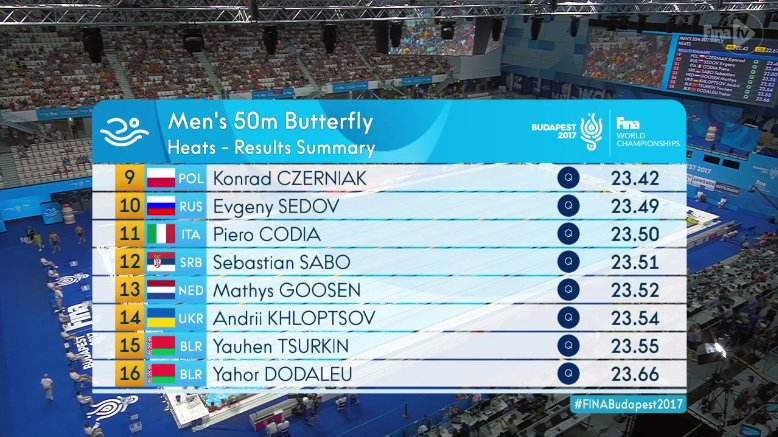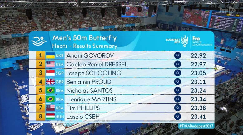 На дистанции 50 метров баттерфляем украинец показал лучший результат среди всех спортсменов – 22.92. Еще один украинец Андрей Хлопцов квалифицировался в полуфинал с 14-и показателем времени.