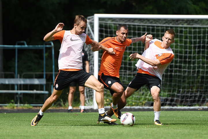Утром 26 июля чемпионы Украины провели сессию на загородной базе «Святошин». Полуторачасовая тренировка состояла из серии игровых упражнений, а также комбинаций с последующим ударом по воротам. Завершилось занятие отработкой быстрого перехода из обороны в атаку.
