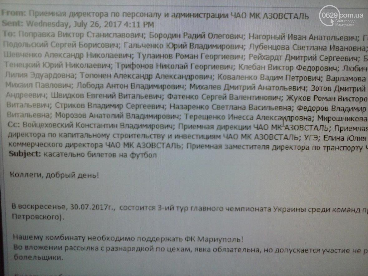 Менеджмент комбината получил указание по электронной почте распределить билеты на футбольный матч