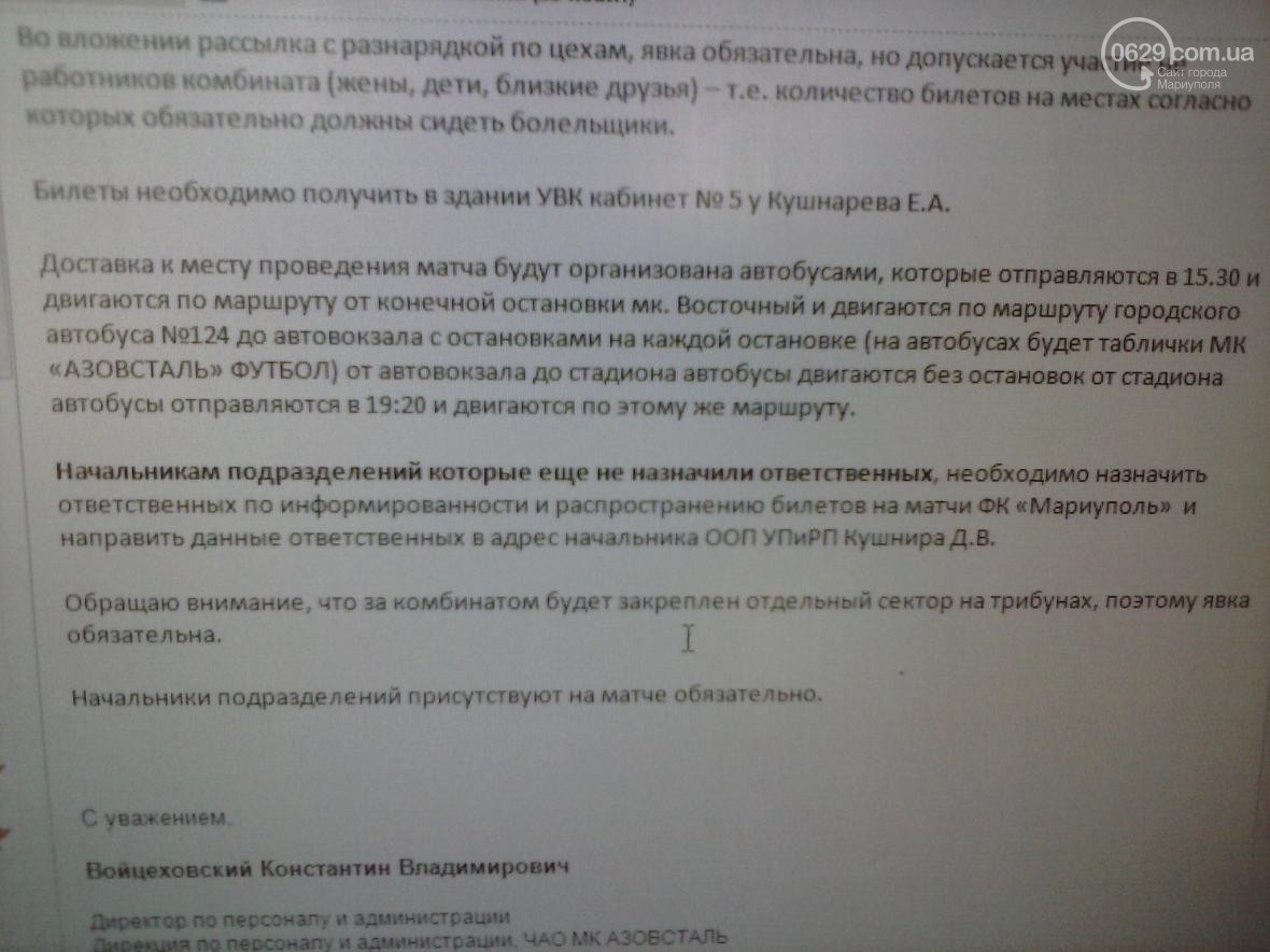 Работников Азовстали заставляют ходить на матчи ФК Мариуполь